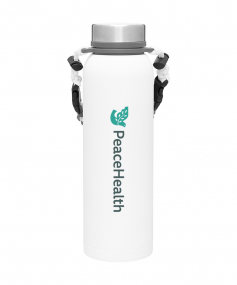 32 oz double wall 18/8 stainless steel thermal bottle with copper vacuum insulation, insulated stainless steel threaded lid, silicone ring, removable strap with buckles, removable clasps, and powder coated finish. Individual gift box. Hand wash recommended. Do not microwave. Complies with FDA, Prop 65. 11" H x 3.1875" W