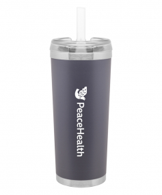 24 oz double wall 18/8 stainless steel thermal tumbler with copper vacuum insulation, stainless steel rim and base, threaded Eastman Tritan lid, snap closure, straw opening, and flexible wide silicone straw.