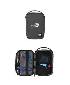 The ultimate travel organizer, the Vault holds cords, charging bricks, memory cards and more tech gear. Made with 900D poly two-tone with PU coating/200D poly lining. Padded grab handle Interior zippered pocket Elastic loops for cords and pens Two interior zippered mesh pockets. 9" H x 6" W x 2.5" D